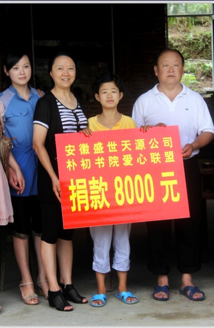8月23日上午,安徽盛世天源國(guó)際養(yǎng)生文化發(fā)展有限公司、樸初書(shū)院愛(ài)心聯(lián)盟一行在中關(guān)鄉(xiāng)汪岳慶副鄉(xiāng)長(zhǎng)、秋千村儲(chǔ)龍彪書(shū)記、沙村小學(xué)劉會(huì)剛主任的陪同下,將愛(ài)心捐款8000元送到了尿毒癥女孩劉云云的手上。