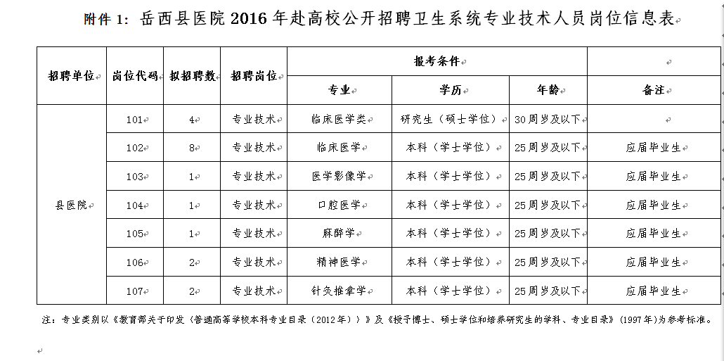 詳見附件1《岳西縣醫(yī)院2016年赴高校招聘衛(wèi)生系統(tǒng)專業(yè)技術人員崗位信息表》。