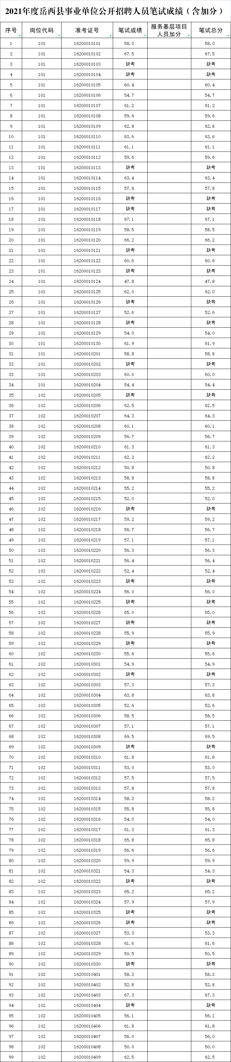 附:2021年度岳西縣事業(yè)單位公開招聘人員筆試成績(含加分)